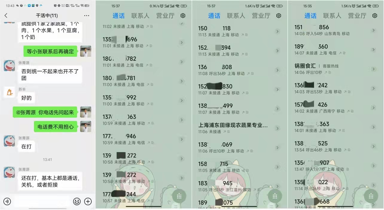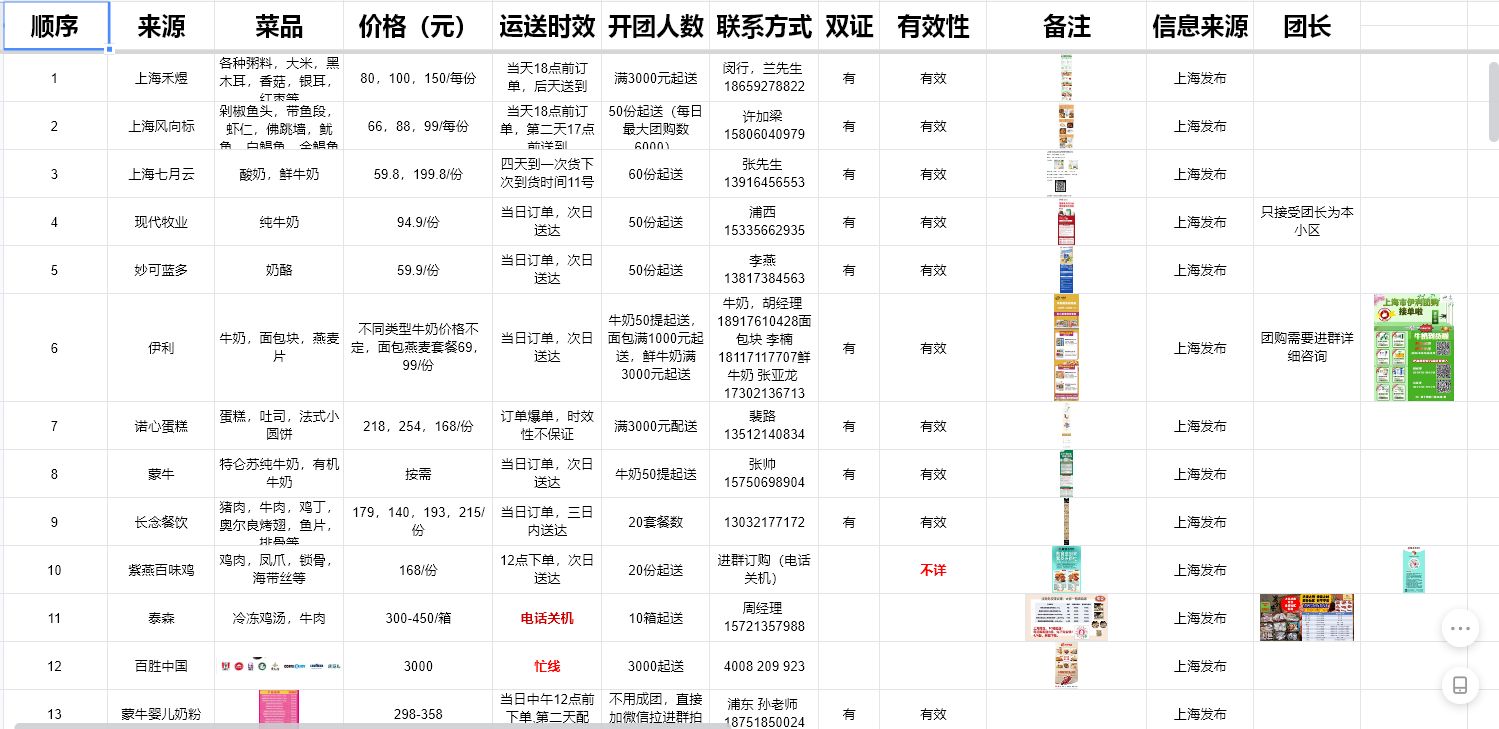 据介绍,第一组是信息收集组,主要负责收集官方平台所发布的团购信息,并逐一拨打联系电话,获得关于运送时效、开团人数、货源是否充足等最新信息。第二组是对外宣传组,主要负责实时更新发布甄别后的有效团购信息,如菜品、价格、物流时间、信息来源等。第三组是团购业务组,主要负责对接住户的物资团购需求。同时他们还有一个光荣任务,那就是帮助有需求的爷爷奶奶们代为团购,让他们不争不抢也能吃上新鲜果蔬。然而,就是这些看似简单的工作,在疫情背景下也变得困难重重。根据一组成员余文钊同学介绍,他每天至少要拨打40-50个电话,其中有的是关机状态,有的处于忙音,因此不得不采取车轮战术,通过循环拨打的方式提高成功率。值得高兴的是,联系上的物资供应商都非常乐意提供帮助,目前已确认约25家供应商信息有效且持有双证能派送物资。