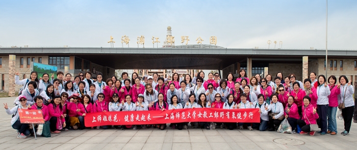 11月10日,秋高气爽,风和日丽,上海浦江郊野公园迎来了一批特殊的女游客,她们统一着装,摆动臂膀,迈开大步,结伴健走在色彩斑斓的健步道上。活跃的身影,如花的笑靥,绽放的活力,别样的风采,格外引人注目。这里,正在举行以“上师姐妹花,健康走起来”为主题的上海师范大学女教工郊野有氧健步行活动。