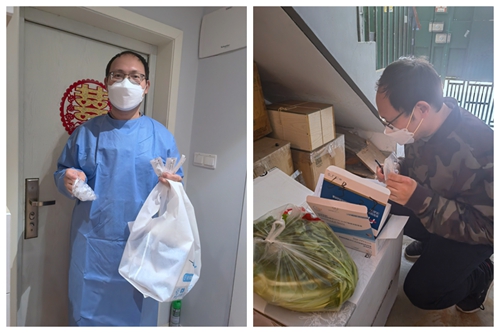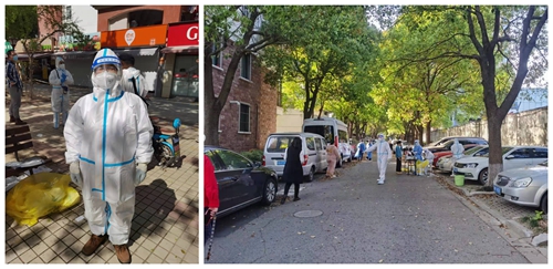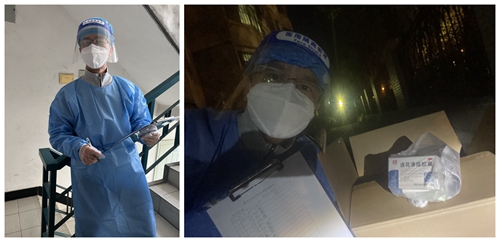 看到小区党员志愿者群里在急召抗疫礼包和抗原自测发放的工作,姚老师第一时间向居委会召集者回复,“我马上可以报到”。他以最快的速度赶到居委会,边穿戴防护装备边听工作要求。他领好物资,到指定工作点,挨家挨户开展工作。在发放物资时配合说明防疫礼包的用法和抗原自测的要求,积极宣传防疫政策,同时也安抚群众焦急的心态,并为社区群众做思想工作,经过几小时的奋战,他认真出色地完成了居委交付的任务。姚老师说:“穿上防护服,以党员身份,为居委会分担、为左邻右舍服务、为疫情防控支援,我感到非常光荣!”