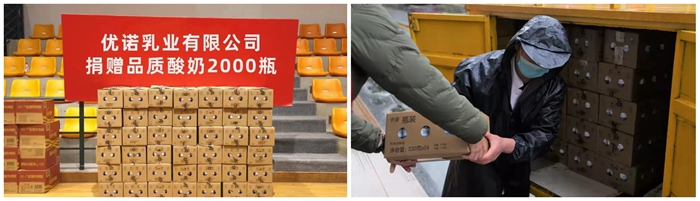 疫情以来,还在休产假的曹宁老师,她心系在校学生,主动联系了优诺乳业有限公司,并在该企业的积极努力下,为在校师生捐赠品质酸奶2000瓶。同舟共济抗疫情,爱心捐赠暖校园。老师和企业家们用爱心筑起了防疫的长城,用实际行动彰显了社会情怀和责任担当,展现了携手同行、众志成城的大爱精神,为我校防疫物资储备作出了积极贡献。