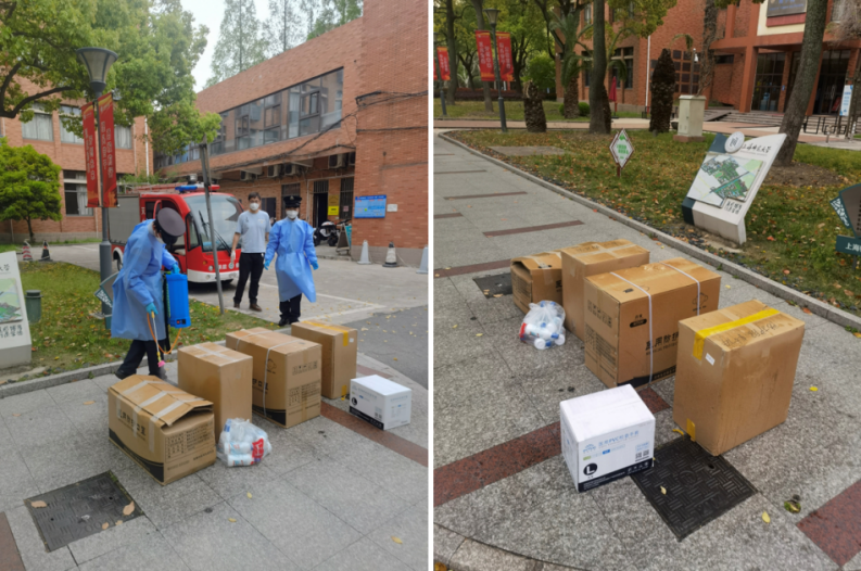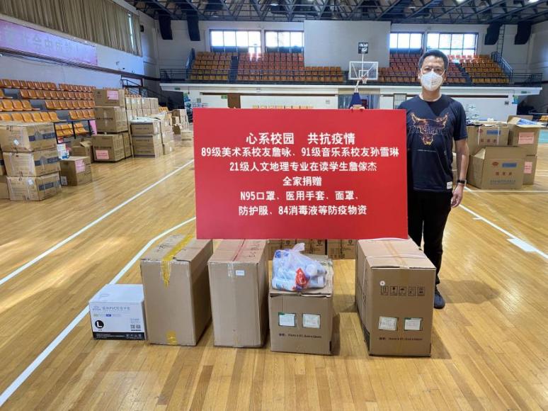 詹傢杰父母不仅是学生家长,也是我校89级美术系和91级音乐系校友。自此轮疫情发生以来,十分关注母校抗击疫情的情况,经常与詹傢杰电话联系询问。在电话中,詹傢杰告诉父母不用担心,如今学校的老师们都变身成“大白”“小蓝”,将自己照顾得很好。詹傢杰父母听到后,一边感到十分欣慰,一边也在思考,能否为母校做些什么?他们想到,如今封校已有多天,学校对防疫物资的需求可能会不断增加。全家商量后,考虑到如今疫情形势严峻,防疫物资可能会紧俏,因此便迅速行动起来,经过多方联系、反复沟通,终于找到一家既有物资又能送货的供货商,最终这批捐赠物资以最快速度在当天下午就送达学校防疫一线。