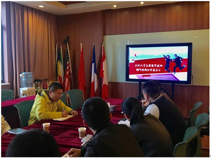 习近平总书记在十九大报告中作出了“中国特色社会主义进入新时代”的重大战略判断,提出“培养担当民族复兴大任的时代新人”的重大战略命题,为我国教育事业发展指明了新的方位,为高校基层思政工作者的育人工作提出了新的要求。在这个承前启后、继往开来的关键时刻,“00后”新生代大学生即将大规模步入大学校园,成为新时代背景下高校思政工作最主要的服务对象。如何将他们培养成社会主义建设的新兴力量,锻造成能够担当民族复兴大任的一代新青年?这是当前每一位基层思政工作者急需思考和探索的问题。为此,商学院党委于11月10日组织召开专题研讨会,党委书记胡志民和全体辅导员一起共同分析“00后”大学生的思想特点,共同挖掘“00后”大学生思政教育的新思路与新模式。