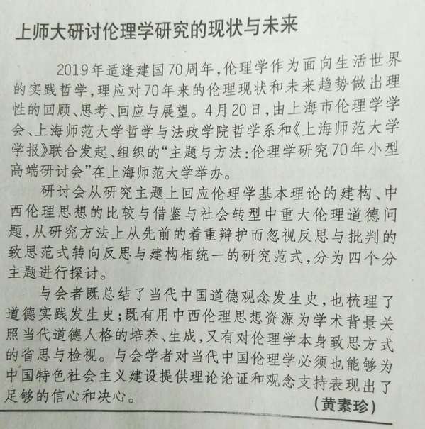 社会科学报:上师大研讨伦理学研究的现状与未来