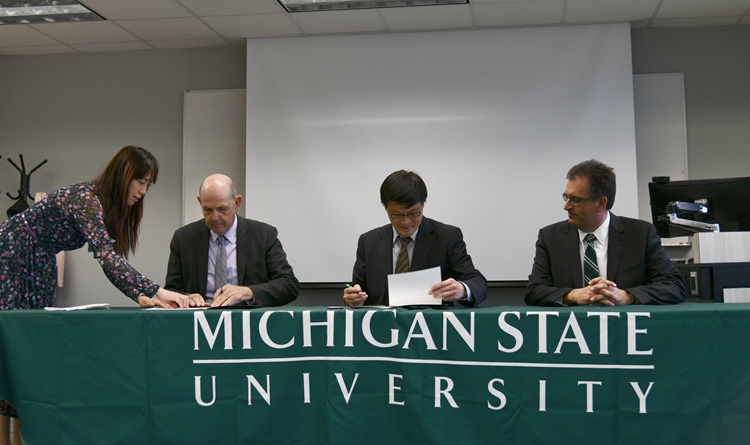 4月25日,教育学院与美国密歇根州立大学(Michigan State University, MSU)成立上海-MSU生涯与工作心理学联合研究中心(Shanghai-MSU Research Consortium on Career and Work Psychology)合作备忘录签字仪式在密歇根州立大学心理学系举行。密歇根州立大学校长研究助理兼社会科学学院副院长Messina教授、我校教育学院院长夏惠贤、密歇根州立大学国际交流中心主任Hanson教授在合作备忘录上签字,密歇根州立大学心理学系主任Donnellan教授主持了签约仪式。密歇根州立大学国际交流中心主任Hanson教授、亚洲研究中心主任Chandra博士、中国交流项目主任Wu Xinyu博士、教育学院高耀明教授、周晓璐副教授、密歇根大学心理学系Ryan,Ford,Nye等教授出席了签字仪式。教育学院范为桥教授和密歇根州立大学Frederick Leong 教授任联合研究中心共同主任。为加强联合研究中心的协同合作,我校邀请了复旦大学、华东师范大学、上海交通大学、台湾师范大学、香港中文大学参与该联合研究中心并作为共同发起单位。