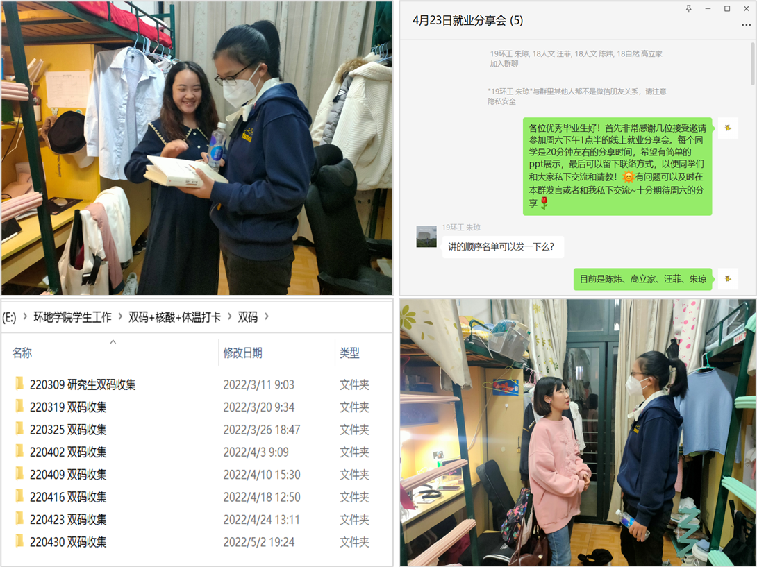 从春暖花开到绿树成荫,为打赢疫情防控攻坚战,环地学院的辅导员老师们保持时刻在线的战斗状态,全力以赴、为爱值守。疫情让他们碰到了许多新的情况和困难,增加了许多新的工作和任务,也赋予了他们更多的责任和身份。虽然每位辅导员老师身份不尽相同,但他们都在全力以赴,共同守护青年学子的健康安全。