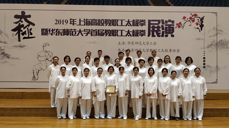 太极拳是传统的体育项目,更是祖国传统文化的精髓。5月11日,由上海市教育工会指导,华东师范大学工会主办的2019上海市高校教职工太极拳展演暨华东师范大学首届教职工太极拳展演在华东师范大学中山校区举行。来自上海交通大学、同济大学、上海师范大学、上海大学、东华大学、上海海洋大学、上海二工大、上海工技大、上海理工大学、华东师大10所沪上高校团队,华东师大地理科学学院队等16个华东师大团队参加展演,集中展示了太极拳的独特魅力,弘扬了太极文化,彰显了上海高校教职工的精气神。我校太极拳协会30多位教师在校工会常务副主席金国忠率领下,以拳会友,切磋交流,收获了珍贵的友谊,也收获了沉甸甸的奖牌。