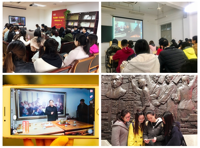 “党的十九大特别强调党的政治建设,党的政治建设要放在党的首位。这是党的十九大的重大贡献,这种贡献和中共四大是一脉相承的。中共四大政治建党上第一次提出了无产阶级领导权和工农联盟的思想。四大还第一次将党的基本组织由‘小组’改为‘支部’,正是四大加强了党的组织建设,党员从四大召开时全国不到1000个,到五大时已经将近6万了……”“中共四大纪念馆2012年9月7日正式对外开放。中共四大第一次提出了工农联盟的问题,第一次讲党的基本组织由‘组’改为‘支部’……”这是分别来自有着30多年党龄的全国教学名师、中央马克思主义理论研究与建设工程首席专家,马克思主义学院党员教师汪青松教授和中共四大纪念馆党支部90后党员、首席讲解员丁晓在中共四大纪念馆共同进行情景党课网络直播时的场景。汪青松教授用共产党员的坚定信仰、用深厚的马克思主义理论涵养,在回顾党的光辉岁月中,由史及今,由浅入深,深度剖析,追根溯源,重点阐述了中共四大在党的组织建设方面作出的重要贡献。历史的场景、丰富的史料、生动的党课,对学院马克思主义基本原理教研部的党员教师们来说,更是学院不断推进党的十九大精神进思想政治理论课课堂改革一次很好的集体备课。