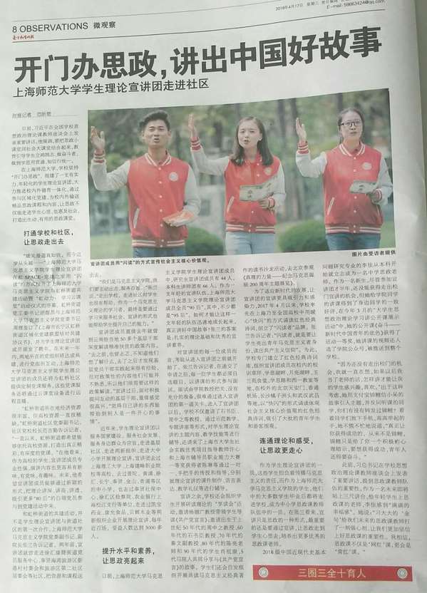 标题:开门办思政,讲出中国好故事——上海师范大学学生理论宣讲团走进社区