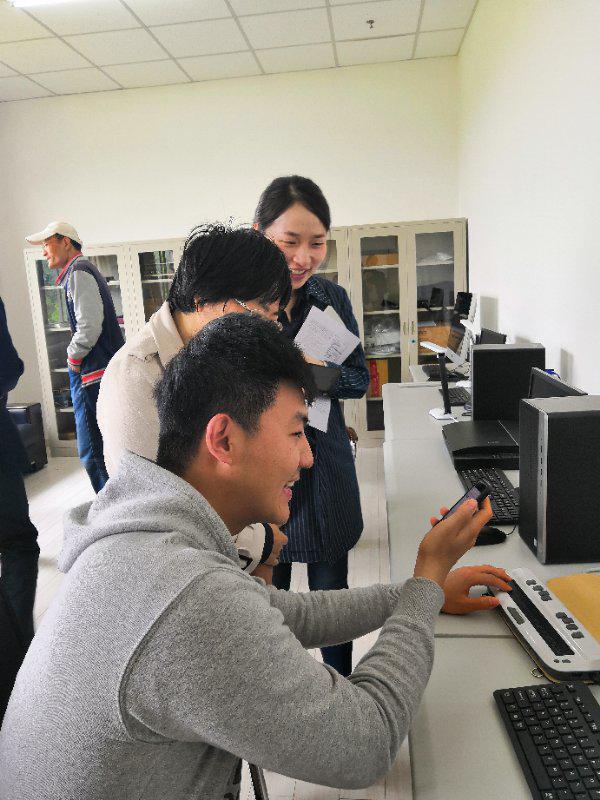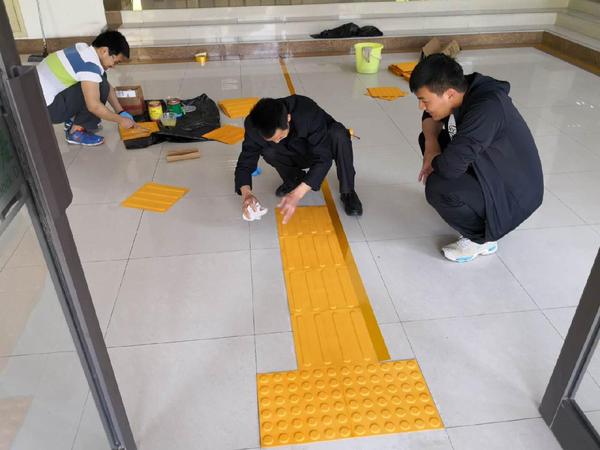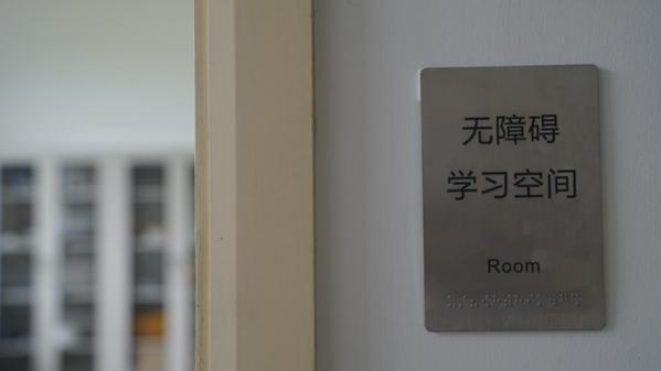 学校的计算中心大楼也进行了相应的改造,新增了大厅盲道、楼梯警示贴、电梯盲文按键、房间盲文标牌等。无障碍学习空间的设计和建设,全程都有视障学生的参与策划。