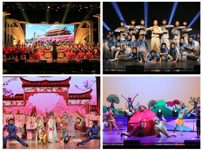 颁奖环节之后,上海市大中小学生们为大家带来了精彩的演出。舞蹈《野火春风》展现了抗日战争时期青年学生前赴后继,永不言弃的无畏精神和坚定不移的信念。舞蹈《当我戴上红领巾》聚焦一个孩子戴上红领巾的光荣时刻,以孩子的视角展现着新时代的红领巾沐浴在党的阳光下的幸福情感,以及为成为国家栋梁之材而不断努力的爱国情怀。校园剧《我的未来不是梦》讲述了几个孩子共同追求心中的艺术梦想,不断携手前行的故事。他们在感受美、追求美的过程中也展现着美、创造着美。戏曲《梨园蓓蕾》通过小演员们唱、念、做、打、翻等艺术表现手段,在颂扬武艺高强的少年英雄们不畏艰难,爱国戍边好品质的同时,展现了国粹京剧艺术的无限魅力。此外,朗诵《男孩的脚》、歌舞剧《拨萝卜》、校园剧《手机综合症》、舞蹈《戈壁沙丘》、合唱《多想对你说》等作品也是精彩纷呈,赢得阵阵掌声。