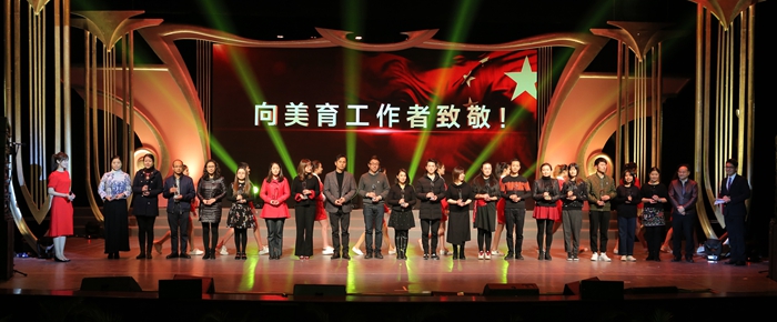市教委副主任倪闵景为“2017年上海市原创美育微课程、微视频创作大赛”获得一等奖的老师们颁发了奖杯,此次大赛得到了广大艺术教育教师的积极响应,共收到团体作品三十余份,个人作品一百七十余份。
