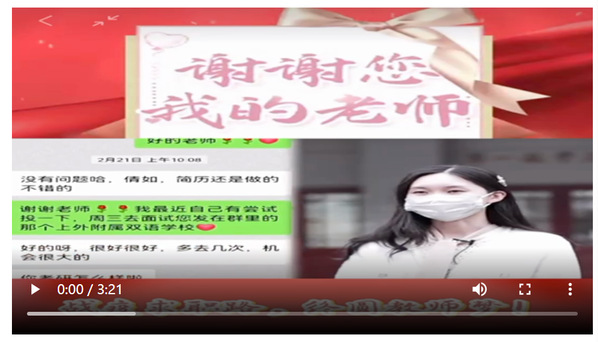班级群里,老师一旦发布教师内推岗位,只要符合条件,她都积极应聘。然而投出去的简历常常石沉大海,她于是向辅导员曾旭老师寻求帮助。