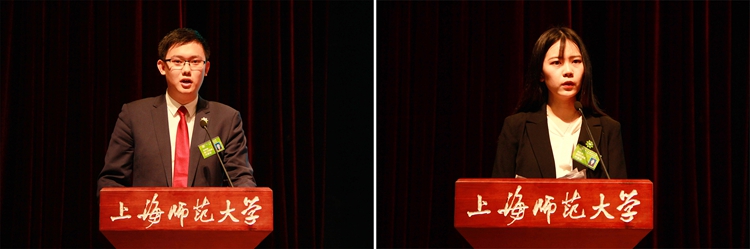 华东政法大学学生会主席王公杰代表上海市学生联合会主席单位、华东师范大学学生会副主席布天慈代表兄弟院校学生会向大会致贺词,肯定了我校学生会在开展校园文化活动、搭建学校与学生沟通桥梁、打响校园媒体品牌以及实践育人等方面取得的成果,并预祝上海师范大学第二十次学生代表大会顺利召开。