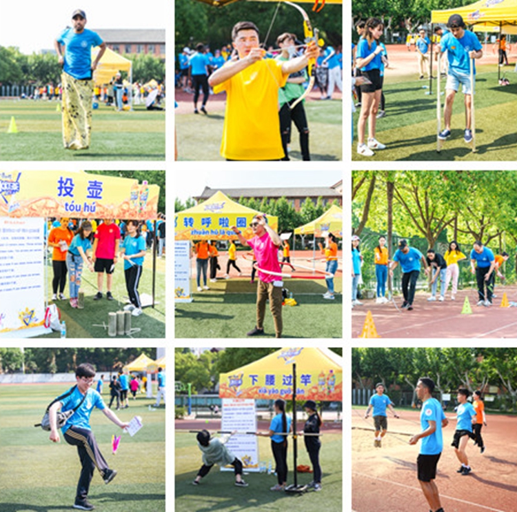 本届趣味运动会共设五个团队项目与九个个人项目,在充分突显活动游戏性和趣味性的同时,更强调了团队协作的重要性。在同心击鼓、三方拔河等团体项目中,中外运动健儿们齐心协力、奋勇拼搏,为了共同的荣誉坚持到底,增强了中外学生的合作精神和集体荣誉感;在投壶、滚铁环、踢毽子、袋鼠跳等个人项目中,同学们勇于挑战、永不放弃,在激烈角逐中磨砺了克服困难的意志品质,展示了中外学生奋发向上、追赶超越的青春风采。
