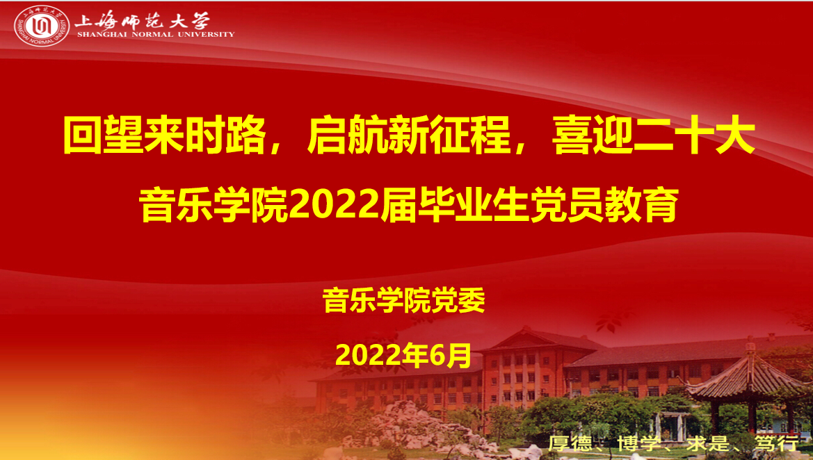 本次毕业生党员教育活动主要背景有两个:第一,是在全市人民群众的共同努力下,上海的疫情防控已经取得重大阶段性胜利,在这场伟大的人民战役中,党员身先垂范、无私奉献,涌现出许多感人至深、催人振奋的事迹和个人。音乐学院学生党员有的在校内外担任防疫工作志愿者,有的发挥音乐专长担任弘扬正能量的传播者,学生党员用各自的方式积极践行党员宗旨,书写新时代大学生党员的风采。第二,是在六月毕业季,毕业生党员即将走出校园、踏上社会,实现人生角色的重要转变,意味着毕业生党员即将承担更重要的责任担当。