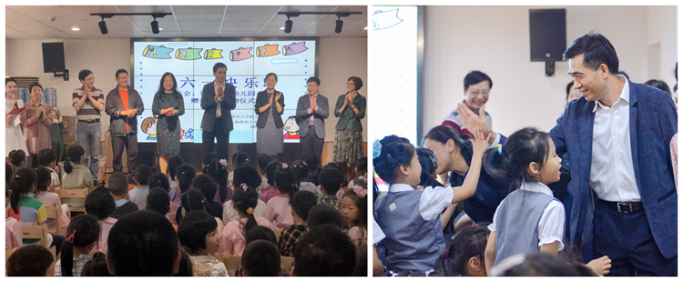 当天上午,校党委书记滕建勇、副书记裴小倩和相关职能部门负责人也来到幼儿园活动现场,亲切慰问师大教职工子女。滕建勇代表学校向师大教职工子女致以节日问候,祝愿师大小苗苗们快乐健康地成长!幼儿园和小朋友们还获得了由校工会、妇委会赠送的儿童书籍、益智积木等。