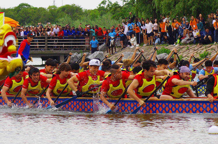 6月1日,第十二届上海高校外国留学生龙舟赛在华东理工大学奉贤校区举行,我校国际学生龙舟队参赛,并首次成功闯进决赛,获得了第八名的历史最好成绩。