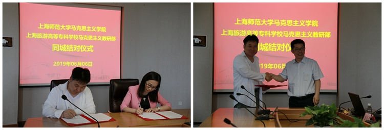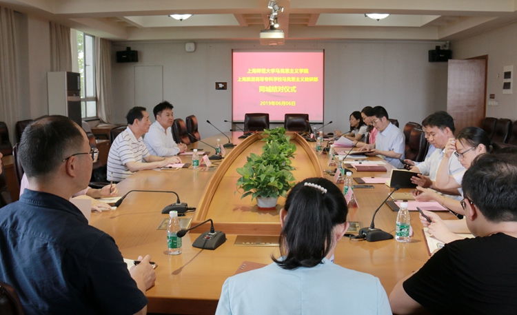 为进一步加强马克思主义学科社会服务功能,提升思想政治理论课教学质量,推进马克思主义学院内涵提升建设,6月6日,学院与上海旅游高等专科学校教研部签订结对共建协议。上海旅游高等专科学校党委书记刘晓敏、副书记郑旭华,马克思主义学院院长张志丹、教授周中之,及相关职能部门负责人、马克思主义教研部专兼职教师和形势政策课教学团队参加。