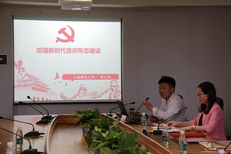 张志丹代表马克思主义学院与上海旅游高等专科学校公共教学部党支部书记隆玲共同签署和交换了合作共建协议书。他表示,马院愿意支持兄弟院校的学科建设、人才培养与科研提升,共同推进立德树人的教育目标。最后,他受邀为为上海旅游高等专科学校马克思主义教研部教师作题为《加强新时代意识形态建设》的专题报告。