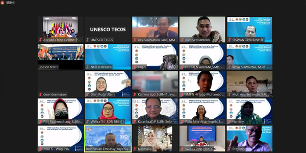 为回应东盟各国特殊教育学校教育工作者对提升能力的迫切需求,联合国教科文组织教师教育中心策划了为期四天的培训,内容涵盖上海特殊教育的发展特征,上海特殊教育的课程、教学与师资建设,上海特殊教育学校典型办学案例以及上海中小学融合教育的开展等四大模块。培训开幕式以线上线下相结合的方式举行,来自印度尼西亚、老挝、柬埔寨等多个东盟国家约1000位参加培训的特殊教育工作者在线出席。