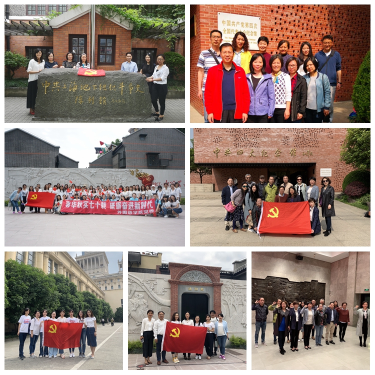 外国语学院大外第一党支部、第二党支部、英语系党支部一行瞻仰了中共四大会址场景再现厅,并认真聆听了主展厅中“时局与形式”、“筹备与召开”、“发展与高潮”三个主题的展览讲解,回顾了中国共产党从诞生至中共四大召开的光荣历史。大外第二党支部走进中共上海地下组织斗争史陈列馆暨刘长胜故居,烈士的遗言、遗物生动再现了中共上海党组织前赴后继、不屈不挠的精神。