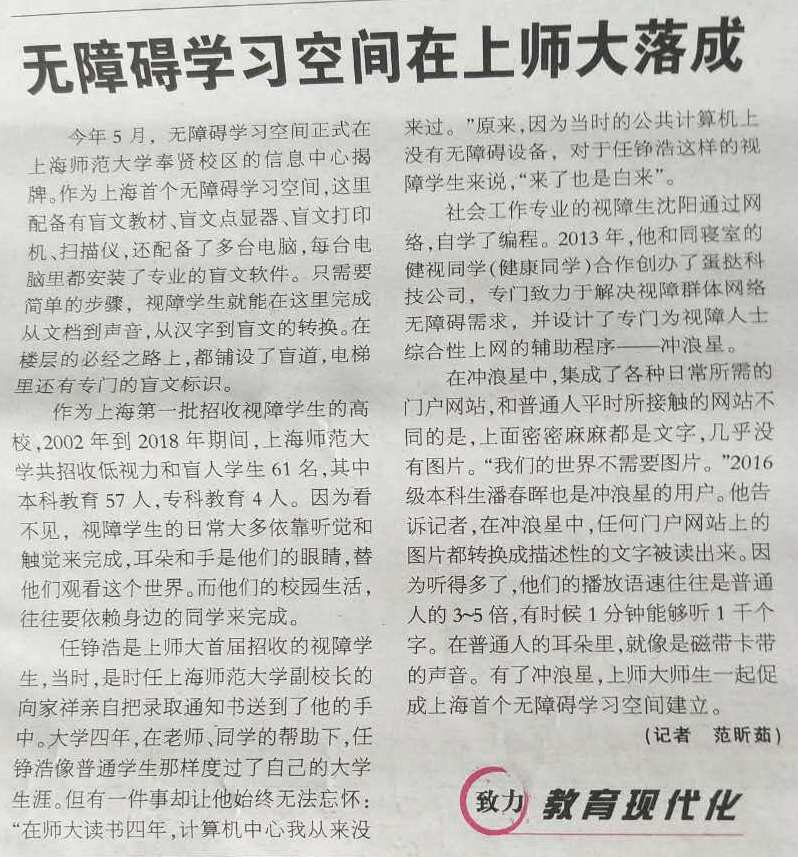 东方教育时报:无障碍学习空间在上师大落成