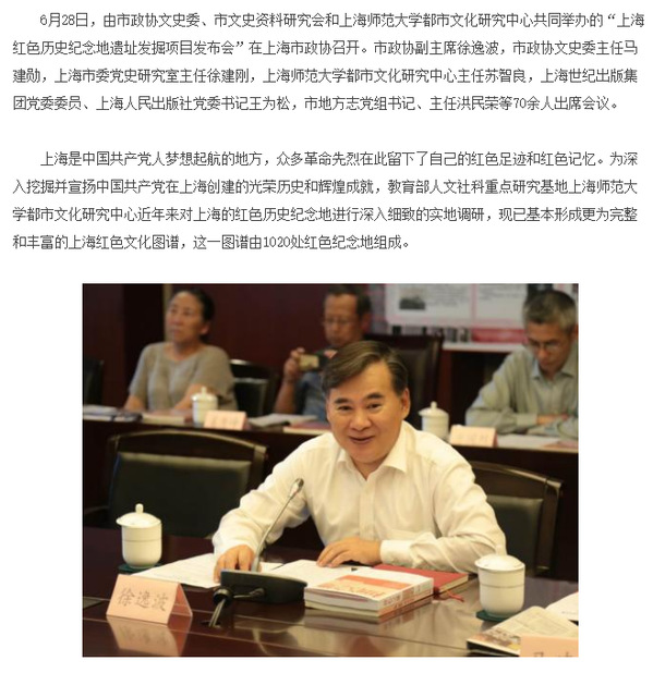 标题:“上海红色历史纪念地遗址发掘项目发布会”在上海市政协召开