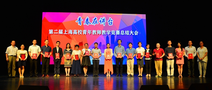 9月7日下午,“青春在讲台——第二届上海高校青年教师教学竞赛总结大会”在我校霞棐剧院隆重举行。我校在本届比赛中创造佳绩,获得数个集体和个人奖项。学校凭借优秀的竞赛成绩和出色的组织工作首次获得上海市五一劳动奖状,同时获得优秀组织奖。我校选手潘黎勇(下图右二)、林方婷(下图右十)分获人文科学组、自然科学基础学科组一等奖,并获得“上海市教学能手”称号;姜杉、邵琳分获社会科学组、自然科学应用学科组三等奖;应叶获得非语言类外语教学学科组优胜奖。