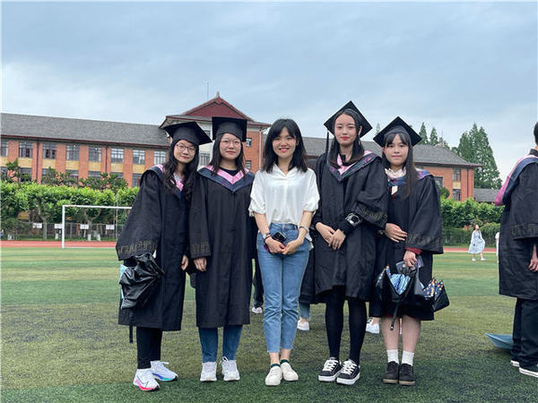 情怀源自于个体内心深处的信念,关怀则是个体能动意识的传递。她曾经连续两年在周末为选修第二学位的学生上课,由于学生们时间安排较难协调,她往往周六都要连上八节课。面对高强度的工作,不叫一声苦不喊一声累,这样的场景如今依然深烙在同事们的脑海。