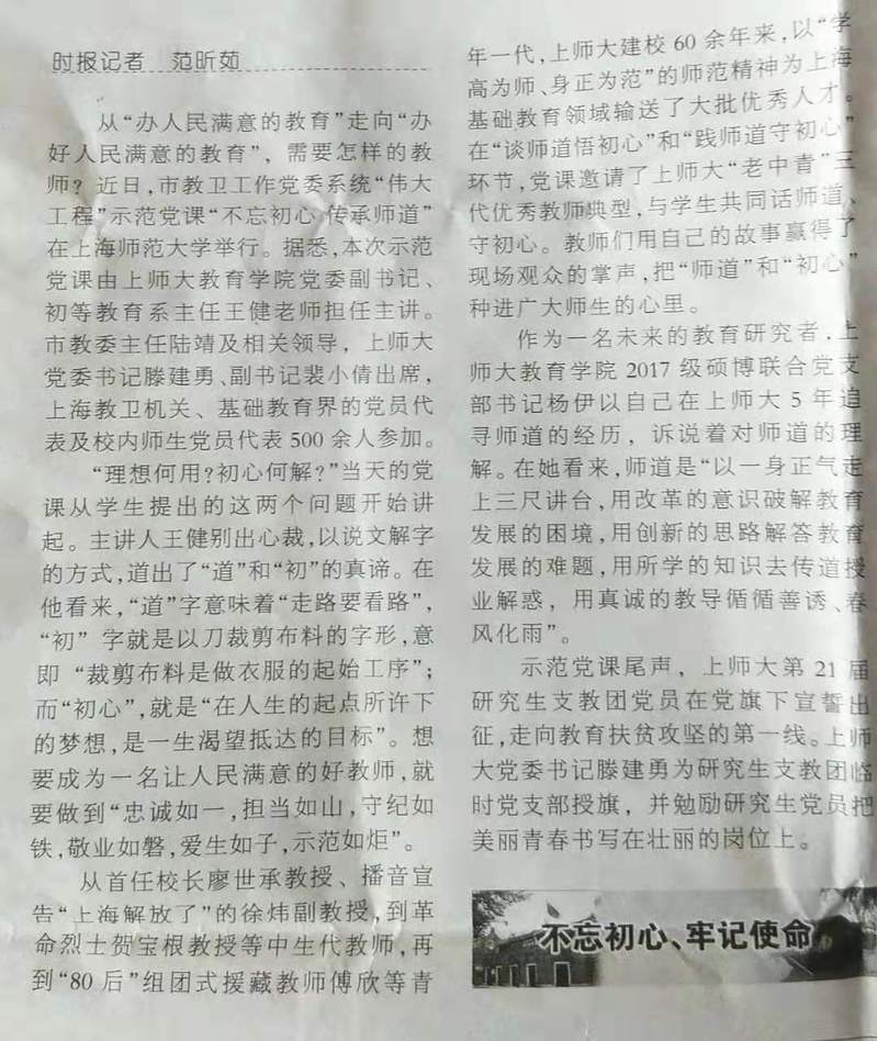 标题:把师道和初心种进广大师生心里——上师大举办“伟大工程”师范课堂“不忘初心 传承师道”