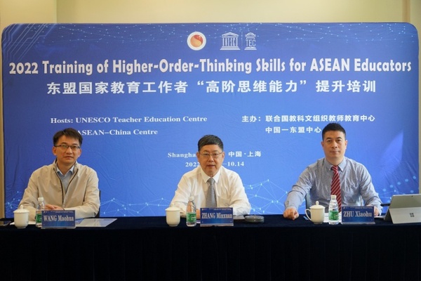 10月12日,中国—东盟中心和联合国教科文组织教师教育中心共同举办的“东盟国家教育工作者‘高阶思维能力’提升培训”在联合国教科文组织教师教育中心开幕。