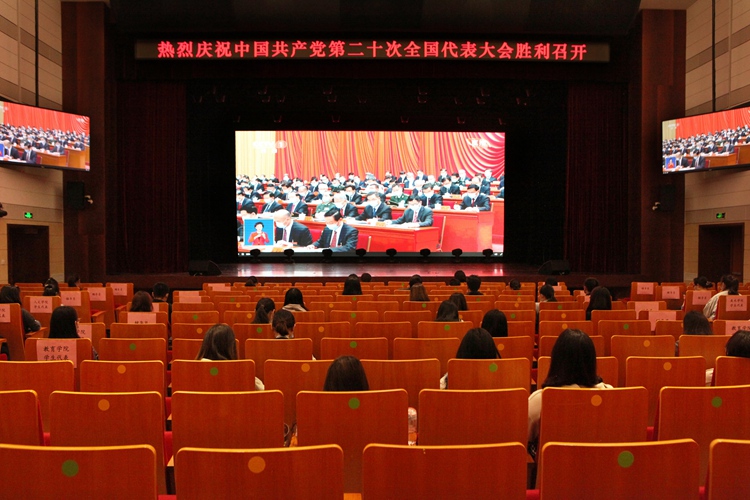 10月16日上午10时,中国共产党第二十次全国代表大会在北京人民大会堂隆重召开,习近平总书记代表十九届中央委员会向大会作报告。机关各部门认真组织党员、干部、教职工通过各种方式收听收看党的二十大开幕会直播,及时学习习近平总书记在中国共产党第二十次全国代表大会上的重要讲话精神,深刻领会“两个确立”的决定性意义,增强“四个意识”、坚定“四个自信”、做到“两个维护”,切实推动学校事业发展再上新台阶。