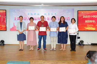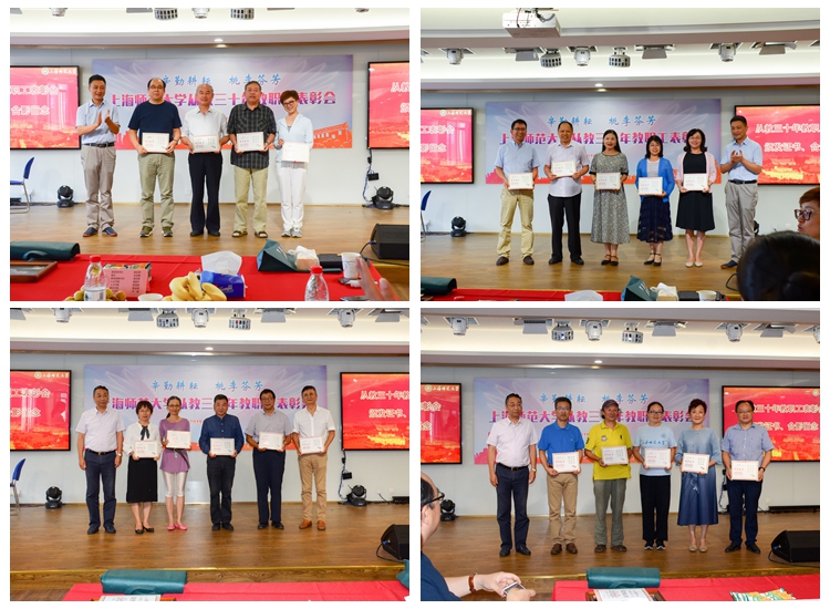 在表彰会尚未开始之际,林在勇走到每个桌前为从教三十年教职工送上了敬意与祝福。在表彰会上,裴小倩宣读了《上海师范大学关于对从事教育工作三十年的教职工进行表彰的决定》之后,校领导为到场的每一位教职工颁发从教三十年荣誉证书,并与他们合影留念。