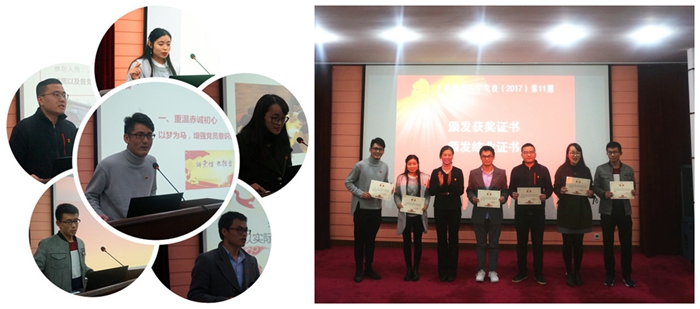 本次结业式一个重要内容就是“主题党日活动设计方案”展示。根据学习计划,学习班的18个小组围绕“学习贯彻党的十九大精神,以实际行动迎接校第七次党代会召开”的主题,在结业前完成一份主题党日活动设计方案。经过初选,6个小组的方案入选决赛。当天,六位小组代表逐一上台,紧扣主题,各显才能。