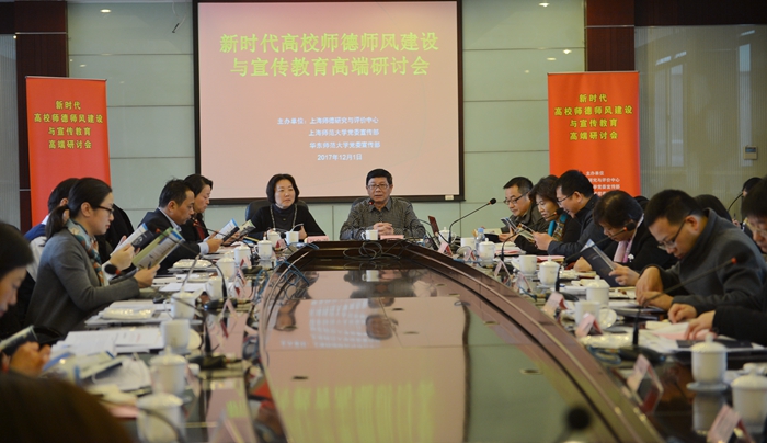 为深入学习贯彻党的十九大精神,加强师德师风建设,培育高素质教师队伍,12月1日,由我校师德研究与评价中心、党委宣传部和华东师范大学党委宣传部联合举办的“新时代高校师德师风建设与宣传教育高端研讨会”在徐汇校区外宾楼101会议室举行。来自复旦大学、同济大学、华东师范大学、上海大学、华东理工大学、上海外国语大学、东华大学、上海财经大学、上海中医药大学、上海理工大学、上海市委党校、上海海事大学、上海第二工业大学、上海工程技术大学、上海应用技术大学、上海电力学院等16所主要高校的宣传部部长、教师工作部部长、师德研究专家及教师代表出席会议。