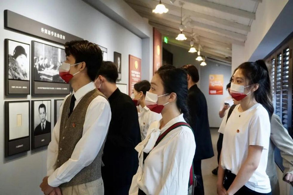 为了更好地读懂、演好剧本人物,同学们前往上海龙华烈士陵园陈延年、陈乔年、赵世炎三位烈士墓前悼念,前往渔阳里中国社会主义青年团中央机关旧址参观学习,研读两位烈士的传记,从红色影视作品中寻找资料,剖析人物情感,建立人物关系。