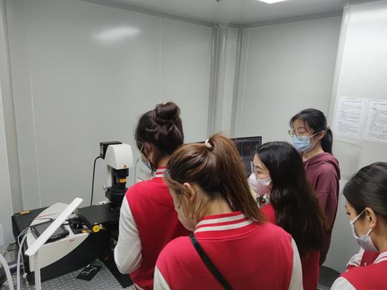 “走进实验室”活动由化材学院化学教工第二党支部书记文颖老师主持。她就活动的相关情况以及具体的参观流程等进行了介绍,支部成员应叶老师从科研学习、学科内涵、仪器介绍等方面为同学们作深入讲解。两院30位同学分为6组,在化材学院分析化学(研)党支部学生的带领下,参观了拉曼、红外光谱仪、SEM扫描电镜、电纺和电致发光等7个实验室。