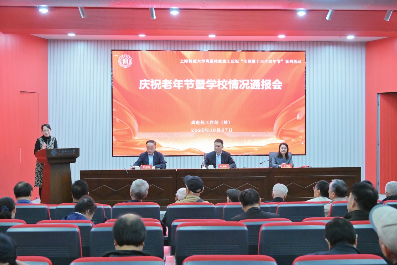 10月27日上午,庆祝老年节暨学校情况通报会在徐汇校区会议中心一号报告厅举行。学校离休干部、退休局级干部、离退休党支部书记、关心下一代战线老同志等齐聚一堂,共同庆祝老年节。校党委书记林在勇、校党委副书记杨海燕、副校长蒋明军出席了庆祝活动。会议由离退休工作部(处)部(处)长唐娟芳主持。