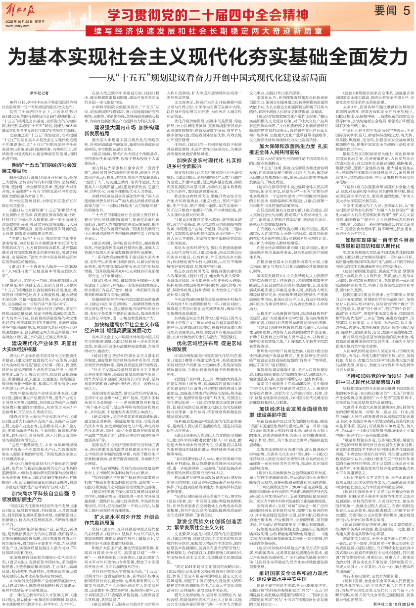 标题:为基本实现社会主义现代化夯实基础全面发力 ——从“十五五”规划建议看奋力开创中国式现代化建设新局面