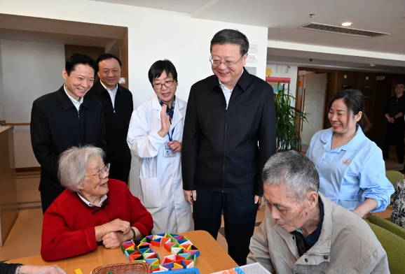 今天上午,陈吉宁来到闵行区虹桥镇敬老院看望慰问老年人,察看智慧医养平台和养老服务设施,了解综合照护及员工制管理工作情况。这家敬老院着力打造集机构照料、医养结合、短托及家床服务于一体的养老服务综合体,积极探索紧密型医养融合、机构与社区融合,一站式解决周边居民养老需求。在医务室、配药室,社区医护人员为老人提供诊疗服务,帮助老人通过互联网医疗复诊配药;在康复室,多种高科技设施辅助老人进行复健训练。