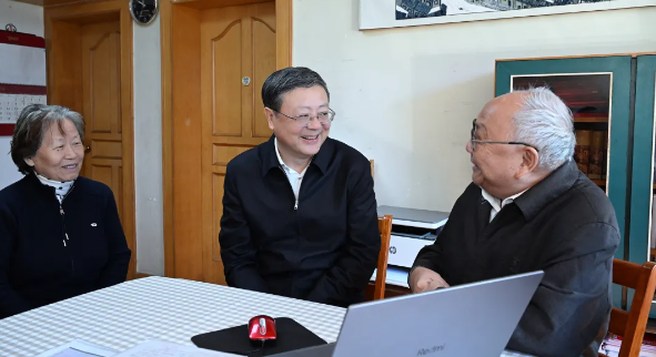 随后,陈吉宁登门看望了盛昌旦老人,向老人致以节日祝福。盛昌旦年轻时曾支援新疆建设,退休后继续发挥所长,积极投身志愿服务和宣讲活动。老人打开刚刚制作完成的PPT告诉市领导,前不久赴新疆开展了一个多月的交流宣讲,以亲身经历讲述这些年的发展巨变,结合学习党的二十届四中全会精神,又对宣讲提纲作了更新调整。陈吉宁为盛昌旦老人依托所长服务基层群众、向社会积极传递正能量的精神风貌点赞,鼓励老人继续发挥余热,讲好党的故事、中国故事。陈吉宁说,要为老年人“老有所为”、发挥作用提供更多平台、创造更好条件,引导老年人保持老骥伏枥、老当益壮的健康心态和进取精神,在参与社会生活、志愿服务中发挥正能量,为上海人民城市建设贡献“银发力量”。