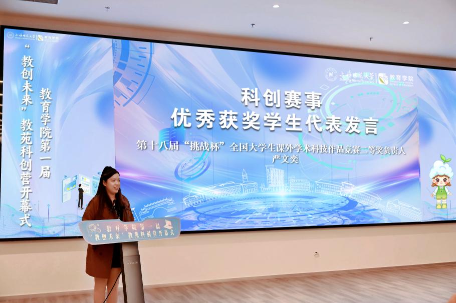 朱惠军在致辞中指出,我校始终坚持以立德树人为根本任务,以推动教育创新为己任,努力培养具有家国情怀、创新精神和实践能力的卓越教师与未来教育家。他充分肯定了近年来教育学院在学生科创赛事上取得的不俗成绩,寄语同学们要紧握时代机遇,勇于“破圈出圈”、坚持“问题导向”、学会“团队作战”,在“教创未来”的旅程中,不仅收获知识与技能,更能培养系统性思维、塑造坚韧品格与凝聚团队精神,真正成长为“会创新、能育人”的时代新人。