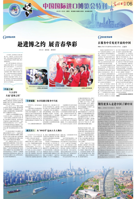 生活之余,上海弄堂里的烟火气、城市的包容温暖,让我十分亲切。上海师范大学成了我的“第二个家”。在这里,我不仅学到知识,还交到许多朋友,身边每一个可爱的人,都让我觉得所有付出都是值得的。这份来自城市与校园的温暖,坚定了我要为中外交流贡献力量的想法。于是我主动报名成为进博会志愿者。