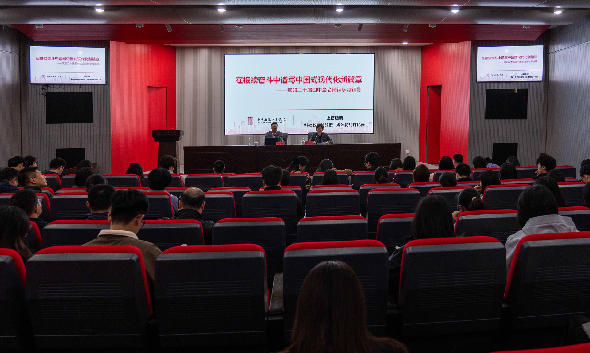 为深入学习贯彻习近平总书记在党的二十届四中全会上的重要讲话精神,更好地学习领悟全会精神实质和丰富内涵,把思想和行动统一到以习近平同志为核心的党中央决策部署上来,11月10日,机关党委在西部会议中心1号报告厅举办“每季一讲”专题讲座,上海市委党校科学社会主义教研部副主任上官酒瑞教授主讲,机关各部门近80位教职工参加活动,机关党委书记曹诚主持。