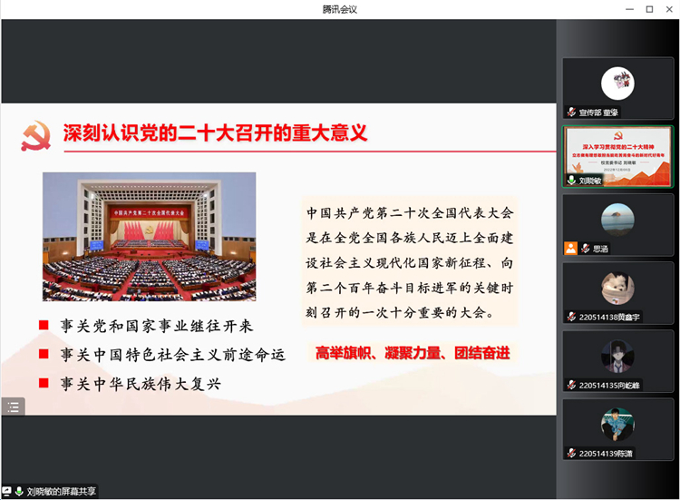 为深入学习宣传贯彻党的二十大精神,推动党的最新理论创新成果进教材、进课堂、进学生头脑,让党的二十大精神融入思政课堂。12月7日,旅游学院党委书记刘晓敏教授走进思政线上课堂,为2022级新生讲授专题思政课,用党的二十大精神培根铸魂、启智润心。