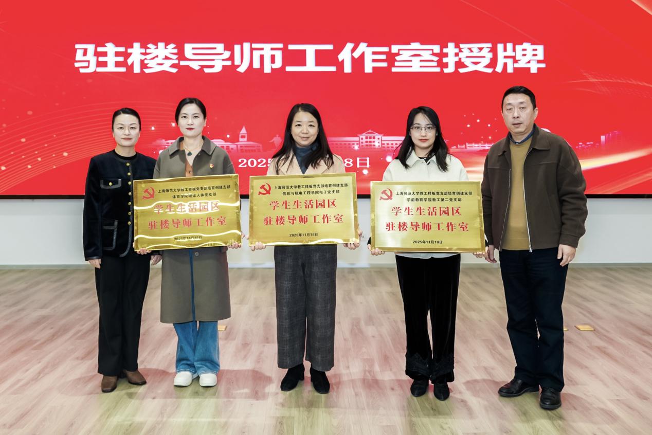 自2020年11月成立首个“驻楼导师”工作室以来,学校先后聘任化材、人文、建工、心理、马院和数理等六家学院的79名专业教师担任驻楼导师。为继续发挥党员教师的示范引领作用,借此学院党委包干学生社区契机,邀请到获得上海师范大学教工样板党支部培育创建支部的学前教育学院教工第二党支部、体育学院理论人体党支部和信息与机电工程学院电子党支部进驻学生园区,成立驻楼导师工作室,共有29位专业老师担任驻楼导师。杨海燕、朱惠军共同为三个党支部颁授驻楼导师工作室铜牌。