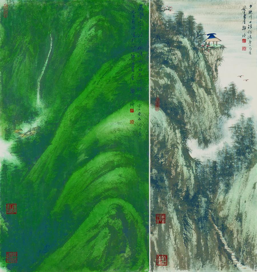 在《万叠岚光冷翠微》前驻足,观者能感受到画家对“亭”的独特理解。亭子在他的画作中往往不占据中心位置,却总能在山水间找到最恰当的存在方式——它时而是山腰一角的小筑,时而是溪畔林间的茅亭,有时甚至只以意象的方式隐含在构图之中,这样的处理方式也是艺术家的初衷:亭,不仅是实体建筑,更是人身心小憩的那一刻。
