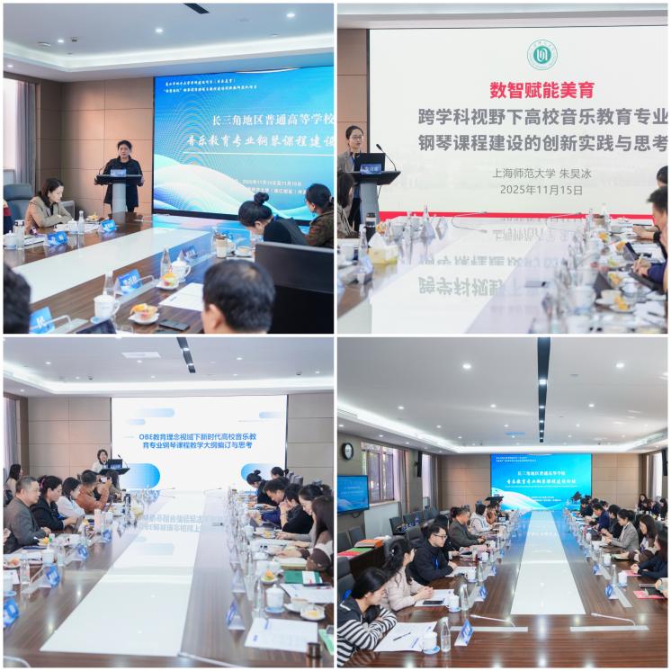 11月14日至11月15日,长三角地区普通高等学校音乐教育专业钢琴课程建设论坛在我校徐汇校区举办。本次论坛由我校音乐学院主办,汇聚了来自长三角地区的专家学者,围绕钢琴课程定位、数字化教学、教材建设等核心议题展开深入研讨,为新时代高校音乐教育改革注入新动能。