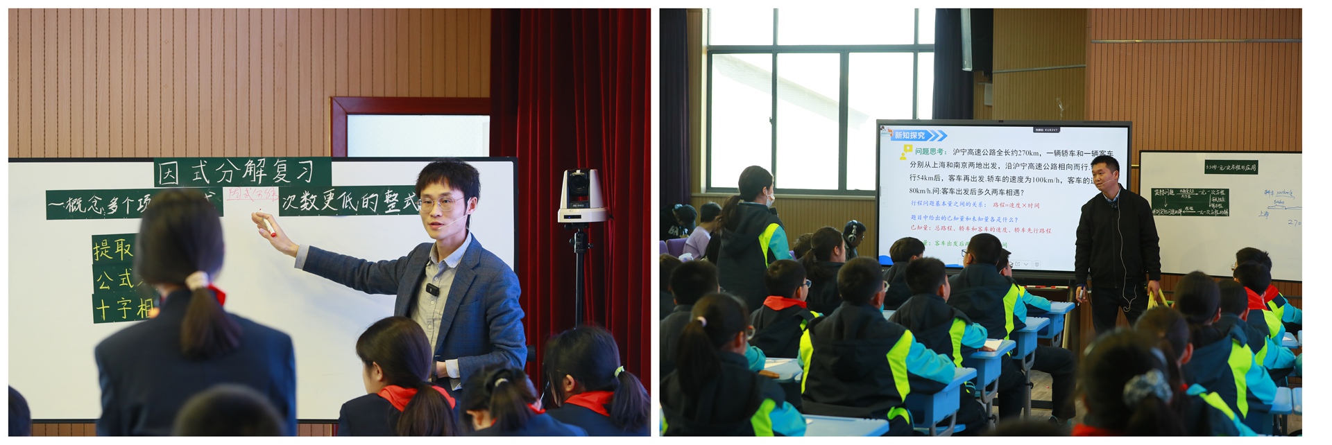 上午10时,两节特色示范课拉开见习序幕。李刚老师的《因式分解(单元复习课)》以“固本培元”为引,将因式分解的数学逻辑与中医药治本之道相融,展现学科本质;陶伟老师的《一元一次方程(行程问题)》以“线段图解法”为桥,将行程问题的抽象思维转化为可视化模型,凸显思维进阶。两位教师将中医药文化有机融入数学课堂,既彰显学科特色,又诠释“文化育人”的深层内涵,令师范生耳目一新。