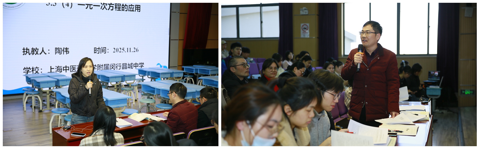 11月26日,数理学院184名数学与应用数学(师范)专业学子走进上海中医药大学附属闵行晶城中学,开展了一场以“中医药文化浸润课堂,双新理念赋能成长”为主题的沉浸式专业见习活动。活动以共建教育实践基地为纽带,串联校园文化体验、教学观摩、教研研讨、班级管理实训等多元环节,为师范生架起理论联系实践的育人桥梁。